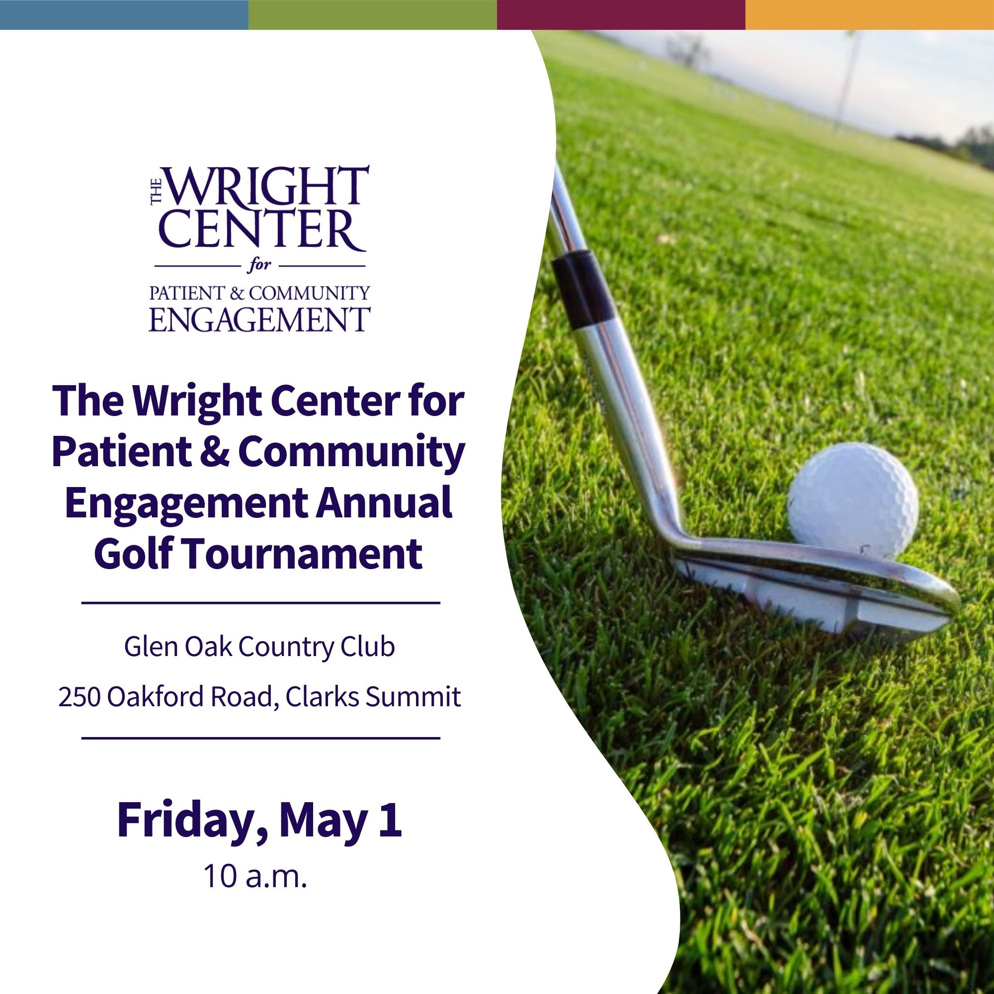 Golf tournament flyer 2026 hitting golf ball on the green with date and time and location