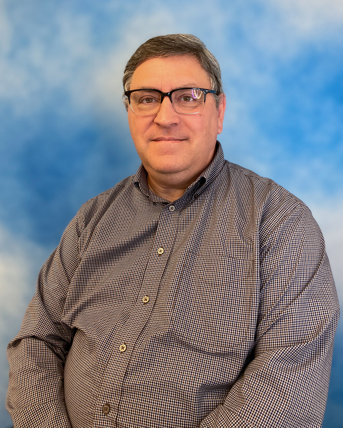 Dr. Henry Novroski’s headshot with a checked button down shirt